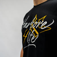 Front printed with the Hardcore 4 Life Paul Elstak Logo. On the back small in the neck Paul Elstak with the Crown is printed!