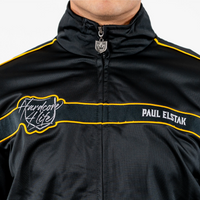 Het Paul Elstak Trainingsjack H4L is een eerbetoon aan de legendarische Hardcore 4 Life slogan. Op de voorkant vind je het subtiele Paul Elstak logo met H4L-accent, terwijl de achterkant volledig geborduurd is met het grote “Hardcore 4 Life” artwork in wit en goud.